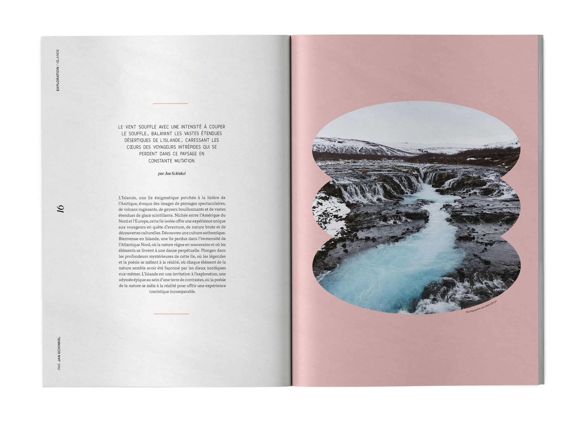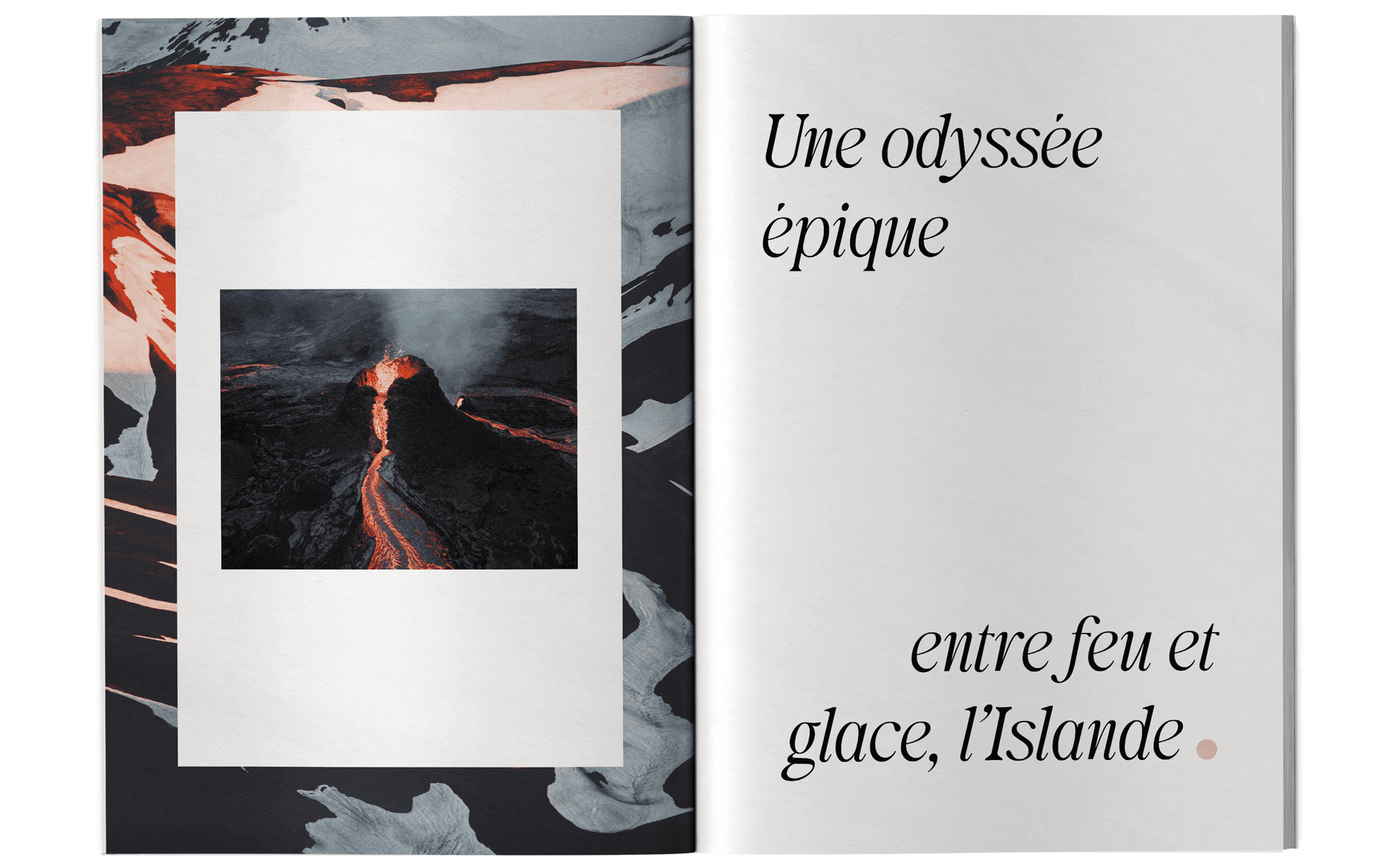 Exploration Islande, c’est avant tout une invitation à l'évasion et à la contemplation de paysages sauvages. Pour ce numéro spécial du magazine Exploration, j'ai eu pour mission de concevoir une édition qui retranscrit la dualité entre la force brute des éléments et la sérénité des grands espaces islandais. J’ai développé une mise en page épurée et immersive, privilégiant des compositions aérées et une typographie élégante, pour offrir une expérience de lecture fluide et visuelle. L'objectif était de transformer ce récit de voyage en un véritable objet de collection, en imaginant un système graphique qui laisse toute sa place à la photographie et transporte le lecteur au cœur des terres boréales.